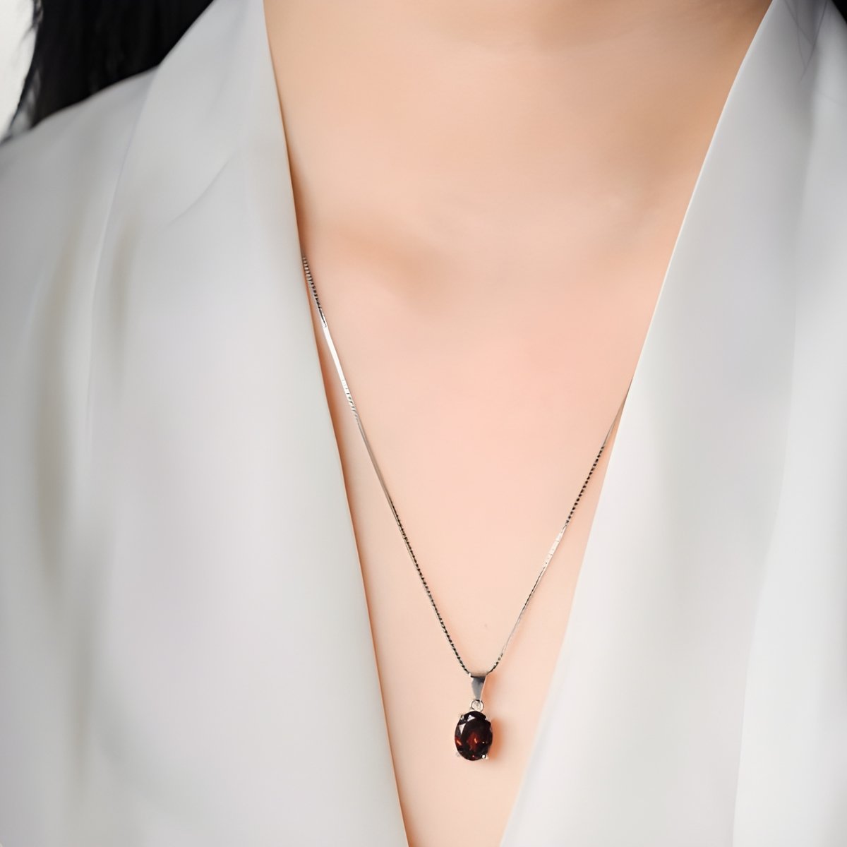 Avec son grenat rouge ovale éclatant de 2,2 carats, le pendentif Gemma célèbre la beauté des couleurs naturelles.